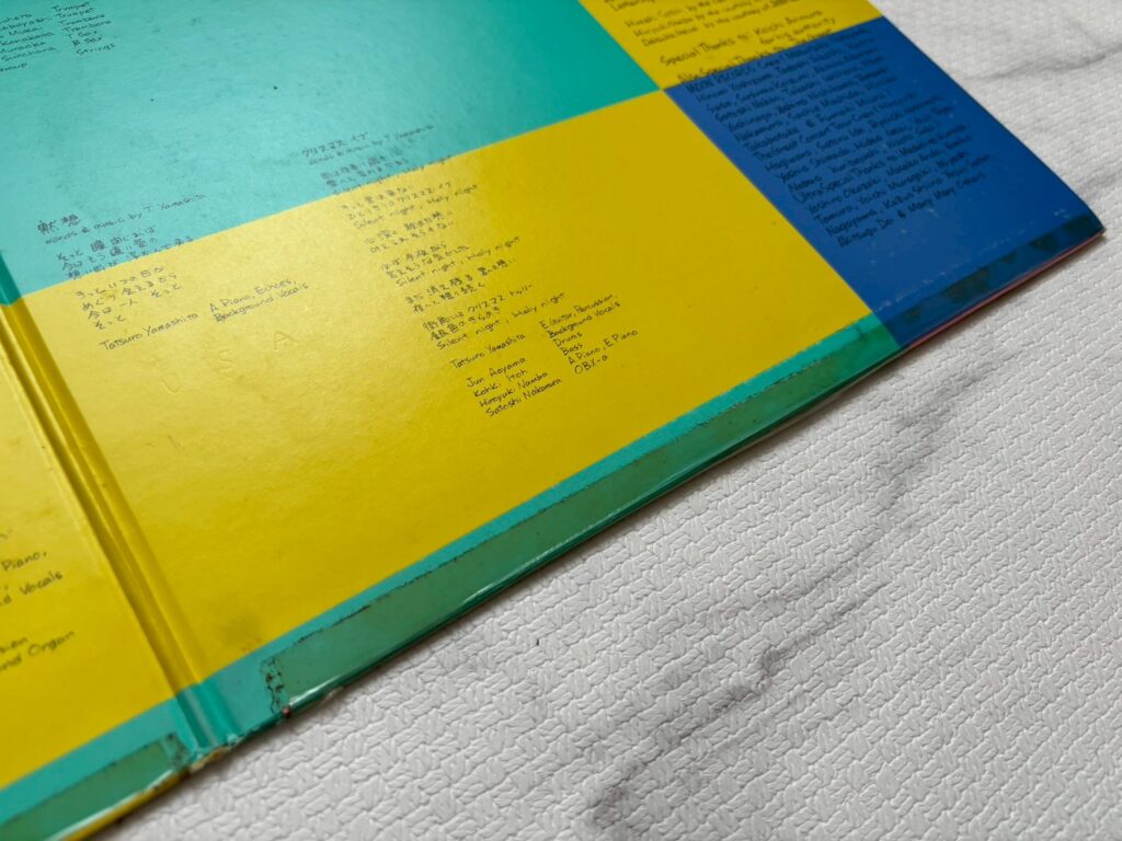 ちなみにディスクユニオンで通常のセンターホール付きだといくらぐらいするか調べたら、中古在庫が1つあった。プレス時期は僕のものとほとんど同じ(MAT 1N/1N, 2AHR:7MGP, CS付き)で6800円だった。(2026年2月 執筆時)
