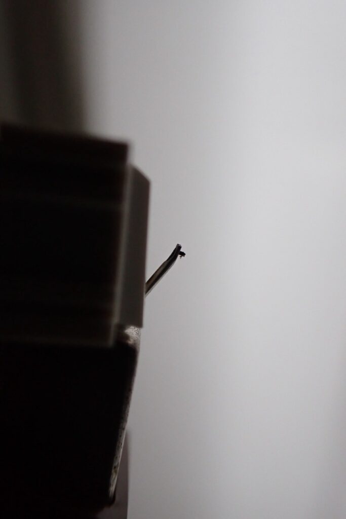 記事を書くに当たってちょうど参考になりそうな写真が撮れたので、ぜひ見てほしい。まずは掃除前のスタイラスだ。カートリッジはPioneerのPC-10だ。